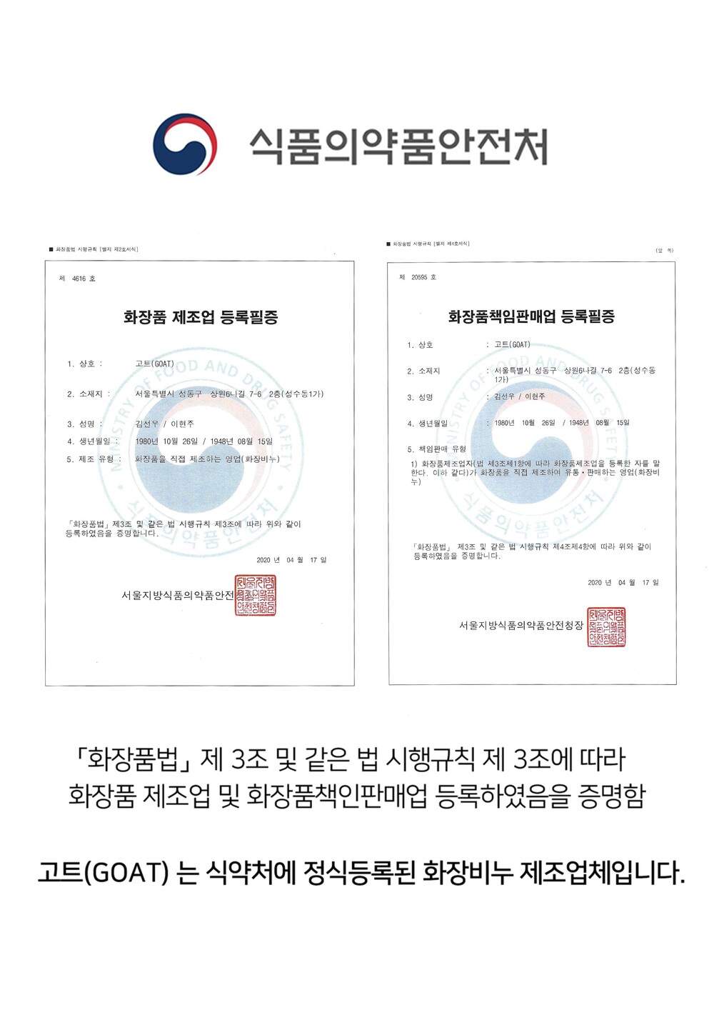 보내실 곳 서울시 성동구 상원6나길 7-6 2층 GOAT(고트) 고객센터 02-6368 - 4350